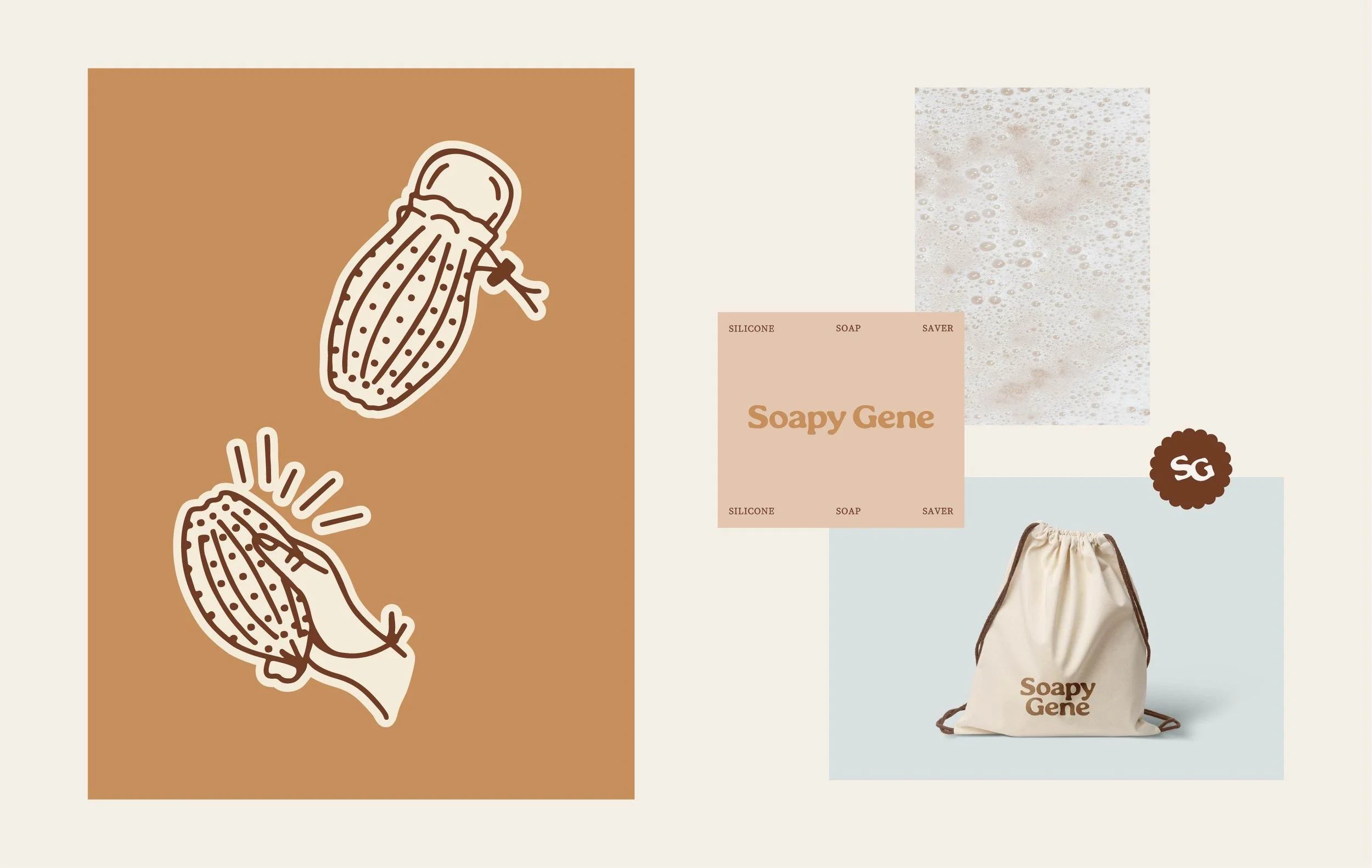When the founder of Soapy Gene, reached out for help with a few brand elements and a product tag, she had a clear vision of what she wanted, but needed help with bringing the brand to life. She wanted an eye-catching identity that deviated from the typical bath accessory brand. Together, we focused on creating a look that feels playful and approachable.